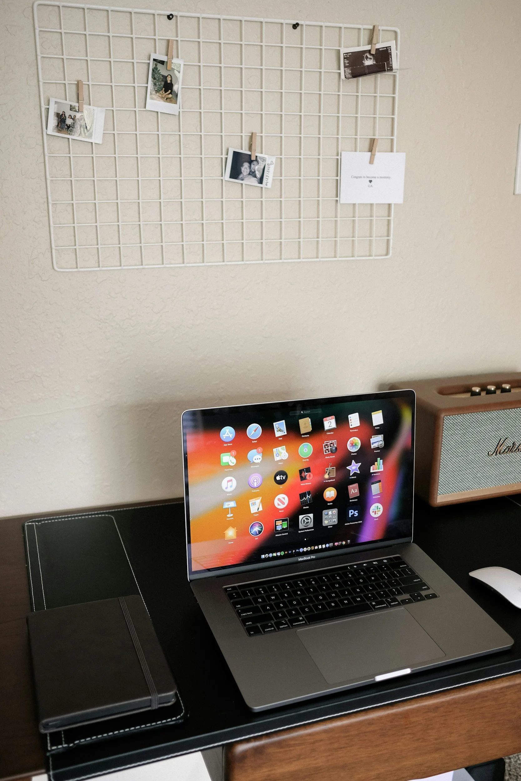 organized notes, pens, and calendar